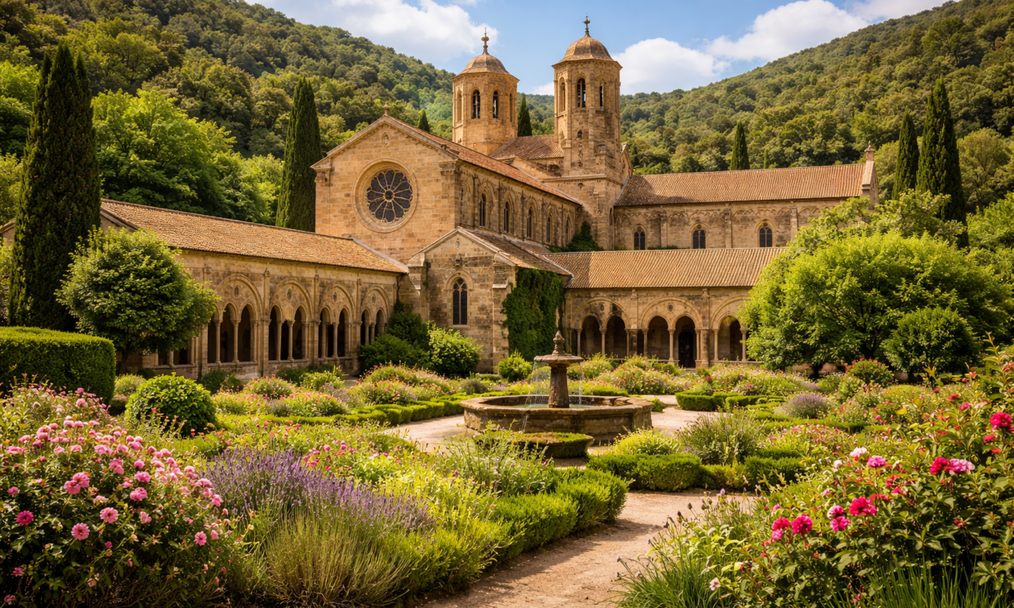 Partez à vélo vers l’abbaye de Fontfroide, un site exceptionnel niché au cœur de la garrigue.